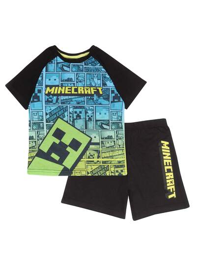 Minecraft 短袖睡衣 | Popgear Creeper Comic 兒童短睡衣套裝 |兒童睡衣英國快速送貨 |值得信賴的英國賣家 |給孩子的好禮物 |非常適合生日和暑假 - 彩色 - 查看 1