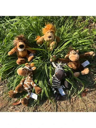 森林仿真动物毛绒玩具柔软毛绒狮子玩具可爱猴子长颈鹿斑马男孩女孩蓬松填充动物玩耍毛绒玩具节日礼物生日装饰复活节派对圣诞礼物 - 彩色 - 查看 1