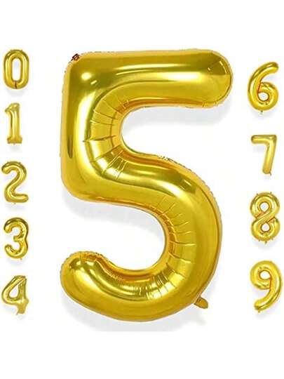 1 件金色 40 英寸 0-9 数字气球带吸管情人节结婚周年毕业圣诞快乐万圣节生日快乐派对装饰铝箔氦气数字气球 - 金色 - 查看 5