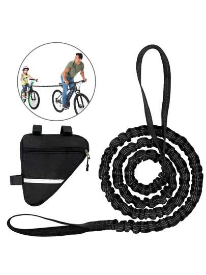 Tow Rope For Bicycle 2.5m-4.5m Elastic Bicycle Tow Strap Bungee Tow Rope Strong Toughness With Triangular Storage Bag - 黑色 - 查看 1