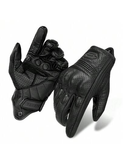 1 件摩托车手套黑色皮革骑行手套全指手套赛车防护装备触摸屏摩托车手套越野摩托防摔保护骑行配件骑行必需品男女骑士礼物夏季 - 彩色 - 查看 10