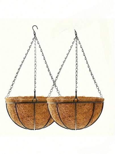 2 包,花园吊篮 8-16 英寸 - 复古几何图案,带椰壳衬垫,2 包悬挂花盆 - 彩色 - 查看 2