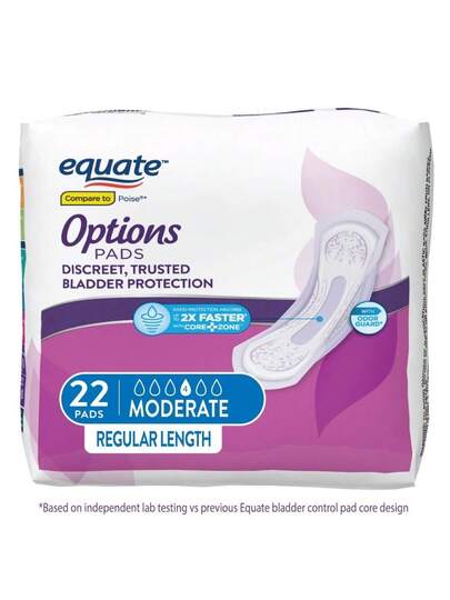 Equate Options Women's Incontinence Pads, Moderate Absorbency, Regular Length (72 Count), Compare To Poise® - 22 - 查看 2