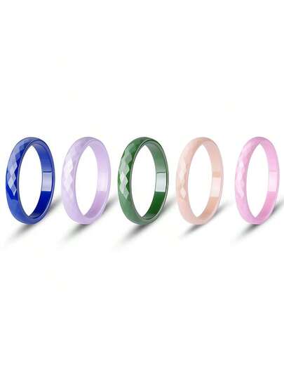 一枚男女通用低过敏性陶瓷珐琅戒指,3毫米宽黑白粉绿三色结婚戒指,男女皆宜,舒适贴合,珠宝礼品 - Faceted ceramic - 查看 20