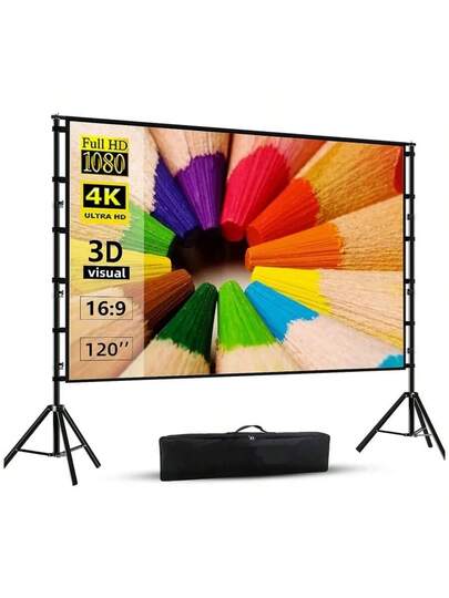 GAINVANE 中东热销商品便携式投影仪屏幕,16:9 4K 高清防皱聚酯磨砂屏幕,160° 视角,支持正投和背投,轻巧且易于组装 - 白色 - 查看 4
