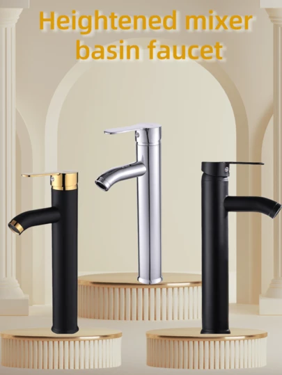 1 件套浴室水龙头,黑色、金色和镀铬,1 孔单柄浴室水槽水龙头,面盆混合水龙头,单杆衣帽间浴室水槽水龙头,圆形高身洗脸盆冷热水龙头,现代台面盆浴室水龙头,适用于房车浴室盥洗盆 - 彩色 - 查看 10