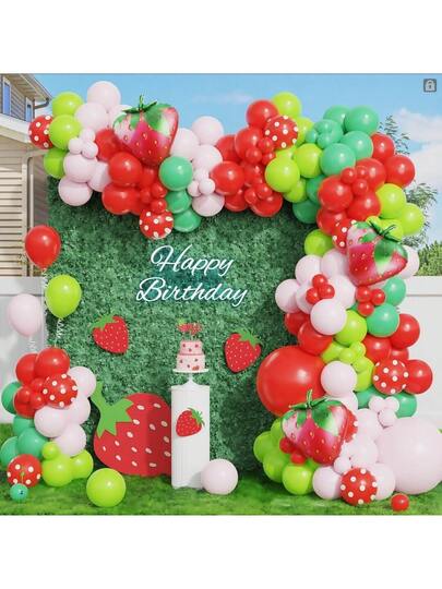 117 件草莓气球拱门套装 - 粉色和红色尺寸草莓铝箔气球花环套装适用于第一个主题婴儿洗礼生日派对装饰 - 彩色 - 查看 6
