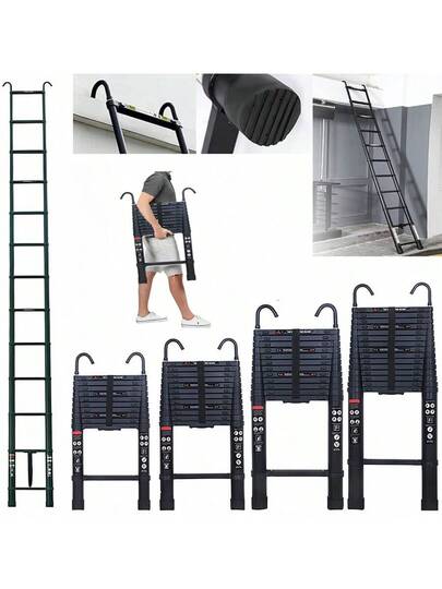 Vandise 3.2-6.2m Heavy Duty Aluminum Telescoping Ladder 150kg/330lb Max Load Capacity - Detachable Anti-Slip Hooks & Rubber Feet - Portable Extension Attic Loft Roof Ladder For Home Warehouse Industrial Use - Adjustable Folding Telescopic Stair Ladder With Locking System - ANSI Certified Durable Construction Ladder For Painting Cleaning Maintenance - 黑色 - 查看 9