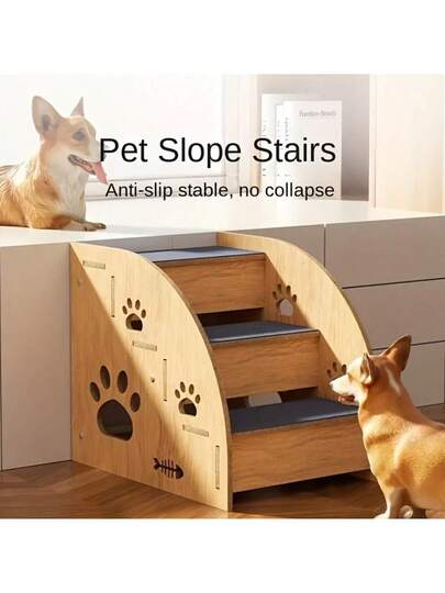 Solid Wood Pet Stairs, Pet Stairs, Dog Stairs, Four-Step Stairs, Pet Cat And Dog Stairs, Non-Slip Detachable Dog Bed Stairs, Wooden Cat Climbing Frame, Suitable For Beds/Sofas, Non-Slip, 2 To 4 Step Canine Stairs With Thickened Safety Rails And Ramp Design, 15 Inches High, Suitable For Small/Medium Dogs, Cats And Senior Pets (Sturdy Construction) - 杏色 - 查看 10