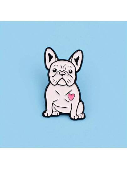 1 件可爱哈巴狗珐琅别针徽章,带心形设计 - 黑白卡通胸针,适合背包、西装、帽子 - 耐用金属配件、宠物爱好者礼物、背包装饰 - 白色 - 查看 1