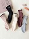 5-9 双女士可爱蝴蝶结和花朵图案短袜,时尚学院风,柔软透气,百搭,适合日常、运动、休闲装,春夏秋