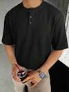 男士华夫格纹短袖T恤,舒适透气,Polo领亨利领设计,易于搭配,穿着舒适,不起球,不易起皱,可机洗,适合夏季聚会、日常度假穿着,尽显复古绅士风范。