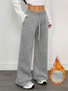 SHEIN PETITE 舒适休闲纯色针织低腰阔腿女运动长裤秋冬保暖加绒