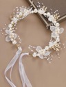 1件装女士花环头饰,人造珍珠串珠星星装饰,布艺头带,适合婚礼头饰、珍珠发饰、夏威夷风情女装