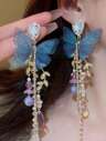 1 对别致的黑蝴蝶长流苏耳环,适合日常佩戴