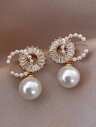 1 对额外水钻雪花仿珍珠吊坠耳环,夸张高端新娘法式耳环,适合女士,适合秋冬