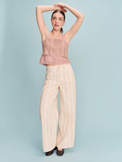 lacRébo 米色条纹高腰阔腿牛仔裤 春夏 - 杏色 - 查看 4