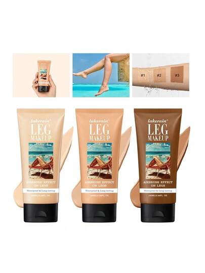 lakerain 100ml 保湿轻盈腿部彩妆,防水均匀肤色遮瑕身体彩妆,防脱妆不结块古铜色粉底,3 种颜色可选,适合不同肤色 - 彩色 - 查看 3