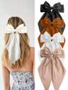 4个装大号缎面蝴蝶结发夹,长尾棕色系列,优雅蝴蝶结发夹,法式发卡,女士日常配饰,适合节日、情人节礼物、户外装饰、爪夹、学习用品、发饰