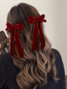 1件酒红色圣诞天鹅绒蝴蝶结天鹅绒丝带水手蝴蝶结鳄鱼夹发饰,送给女士和女孩的礼物,情人节,新年