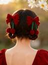 2个樱桃发夹,女童蝴蝶结发夹,可爱水果发夹,女孩双马尾蝴蝶结发夹,新年发夹,圣诞节发饰,发爪,发卡,发夹