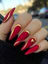 24片红色和金色杏仁形美甲贴片,哑光质感,奢华3D爱心按压式美甲贴片,适合女性,情人节/派对美甲风格