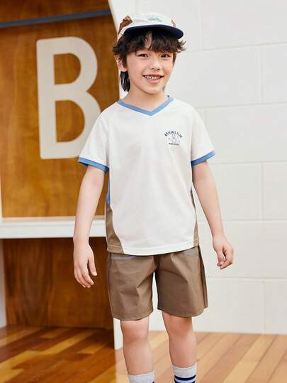 mini bala 男童学院风网眼套装 - 柔软速干衬衫 + 短裤,透气夏季服装 - 咖啡 - 查看 1