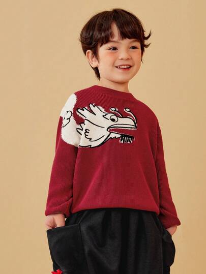mini bala 儿童龙年针织毛衣,时尚又温暖的中国风设计 - 紅色 - 查看 1