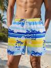 男士蝴蝶印花抽绳腰带沙滩短裤,宽松休闲,适合夏季度假和日常穿着