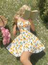 SHEIN MOD 甜美柠檬印花短款连衣裙,适合度假、春夏穿着,柠檬图案,田园风格。