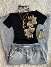 复古美式V领印花长袖T恤,修身女式上衣,春季款