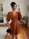 Elenzga 女士纯色V领短袖连衣裙,适合度假/约会/办公/日常穿着,春夏新品