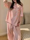 Slumberry CURVE 甜美可爱ins风蝴蝶结条纹印花Y2K翻领开衫加大码女式睡衣套装