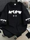 Biye 趣味印花短袖T恤 女款夏季加大码复古宽松短袖上衣 休闲黑色