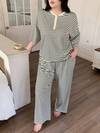 法式优雅宽松荷叶边睡衣套装,浪漫宽松休闲加大码睡衣套装