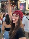 1顶手工钩织镂空波西米亚风红色针织帽,带吊坠设计,透气防晒,适合音乐节、度假和日常佩戴。