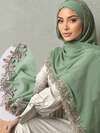 1件刺绣叶子蕾丝边饰端庄透气雪纺围巾头巾,春夏款