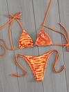 Zestiva 女士两件套豹纹玫瑰花卉细肩带系带三角比基尼泳衣套装