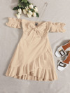 SHEIN MOD 網眼刺繡泡泡袖胸部褶皺洋裝