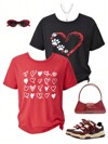 SHEIN Explorewe 两件套少女可爱爱心印花短袖T恤,舒适休闲,情人节礼物之选
