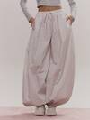 MUSERA 条纹系带前开衩松紧腰灯笼裤裤脚卷边宽松长裤可爱少女性感春冬外出日常复活节春季穿搭Sugar Swizzle
