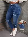 SHEIN SXY 大码休闲破洞高腰修身牛仔裤