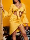 SHEIN SXY 大码女式春夏新款 V 领泡泡袖度假休闲波西米亚热带植物蓝色印花十字交叉系带露背泡泡袖短款杏色剪裁衬衫,适合日常穿着、音乐节、音乐会、狂欢派对、海滩度假、约会之夜、生日、单身派对、俱乐部、可爱、休闲、购物、街头服饰、外出,易于搭配且看起来修身,突出您的身材,修饰身材