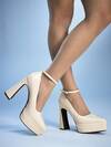 Sugerpunk 女士玛丽珍高跟鞋粗跟防水方头厚底增高鞋