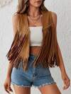 女士Y2K风格流苏上衣 - 流苏细节,V领,无袖,棕色,休闲时尚,适合所有季节,多功能时尚 | 流苏装饰 | 流苏背心