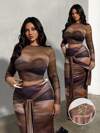 Viva Relle 大码两件套:性感方领长袖上衣和波点印花半身裙