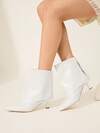 2024秋冬新款女士白色高跟方头弹力踝靴,时尚性感派对优雅骑马靴,圣诞节冬季礼物