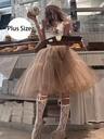 大码女式纯色薄纱蓬松裙 - 多层蓬松派对连衣裙,优雅而蓬松