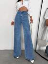 ZIRRA 女式休闲水洗高腰直筒牛仔裤