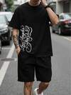 男士极简主义加油站字母印花圆领短袖T恤,夏季